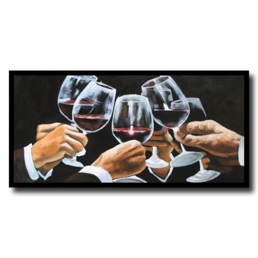 When you look at your painting where the artist has painted six large wine glasses meeting in a toast, you immediately feel a sense of celebration and togetherness. The painting captures the joyful moment when friends or family raise their glasses to celebrate. Each time you view the painting, you’re reminded that life is meant to be enjoyed with those you care about. This painting brings warmth to your home and quickly becomes a symbol of camaraderie and happiness.