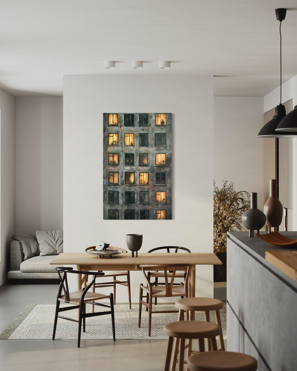 Windows is a piece of art that creates a warm and reflective atmosphere in the room. The vertical format makes it particularly striking on a larger wall where it can serve as a strong visual focal point. The painting can easily be ordered online from Kunstlageret and is delivered ready to hang on the wall.